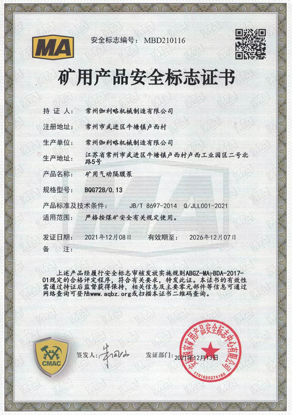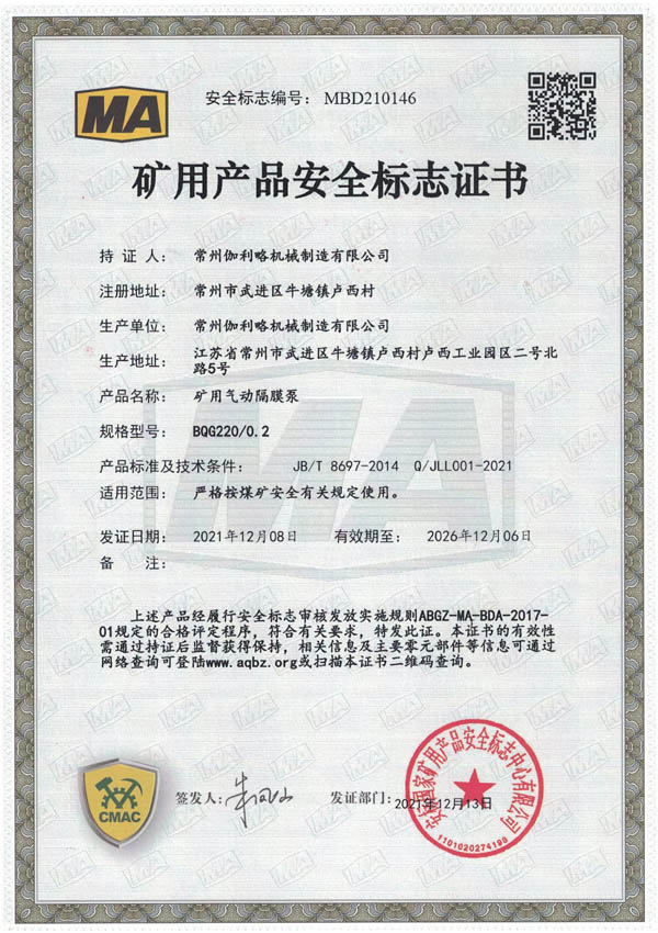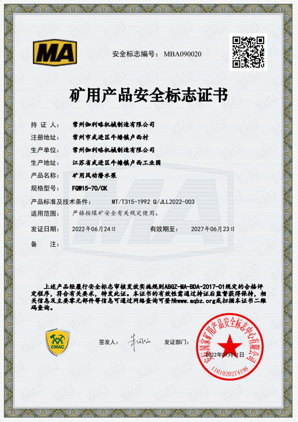 • 礦用安全標(biāo)志證書-BQG550/0.3